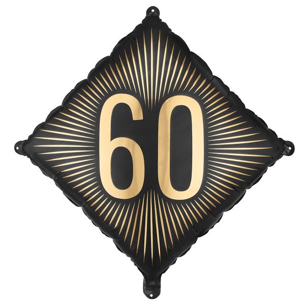 På en 60 års fest blir denna dekoration i svart och guld kvällens glittrande charmör. Som födelsedagsballong och folieballong till 60 år gör den varje födelsedag roligare och är en ballong som nästan får lika mycket uppmärksamhet som tårtan.