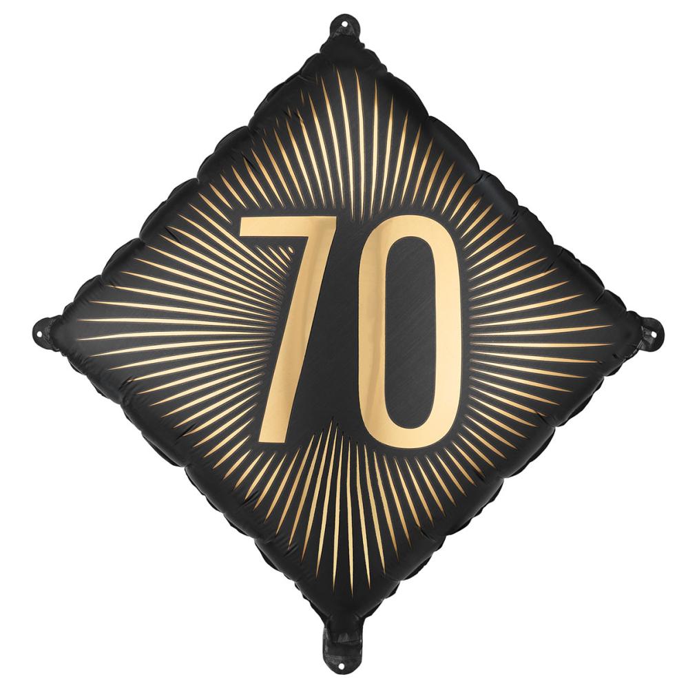 I svart och guld får denna dekoration gästerna att le på nästa 70 års fest. Den här födelsedagsballongen passar som folieballong när 70 år ska firas, och varje födelsedag får extra fart när en sådan ballong dyker upp.