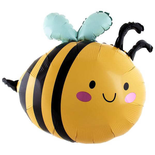 Folieballong Bi 66 x 57 cm omfattar en folieballong i form av ett glatt gult bi med ljusblåa vingar.