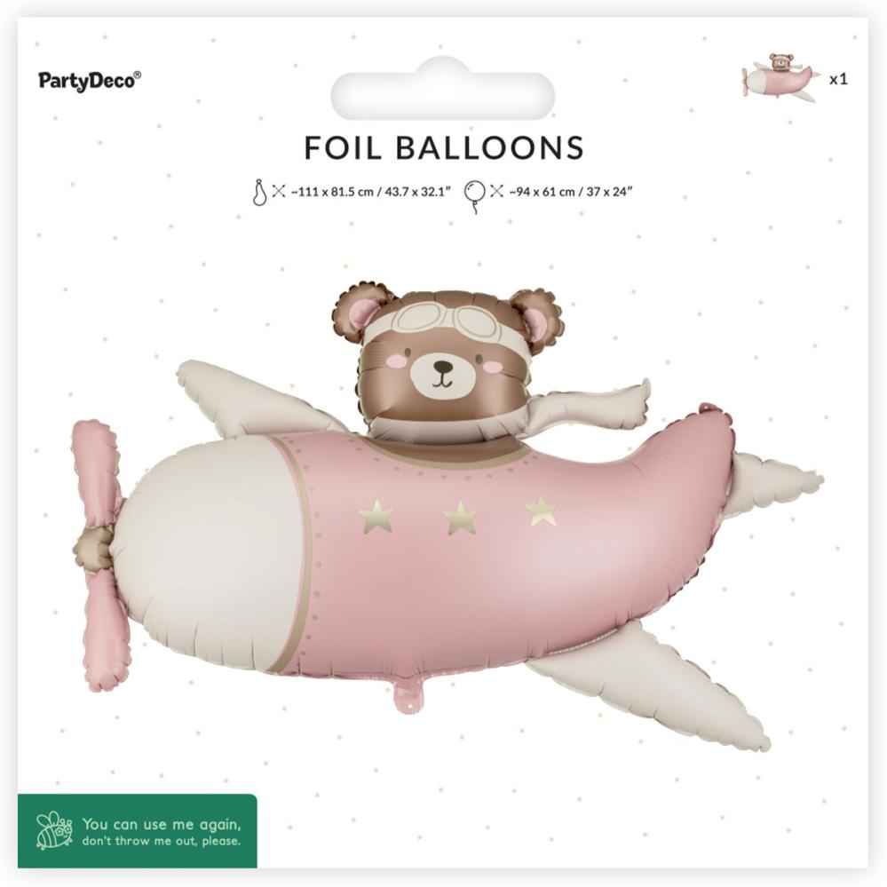 Folieballong Björn i Flygplan Ljusrosa 94 x 61 cm