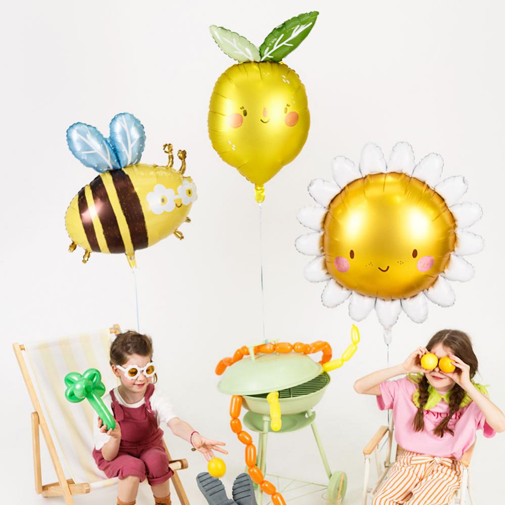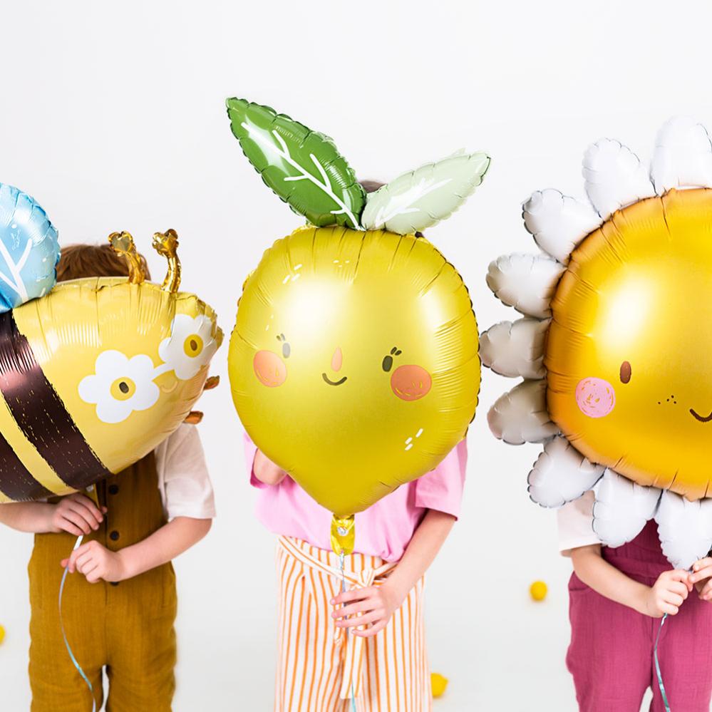 - Folieballong i form av en citron med ett leende ansikte.
