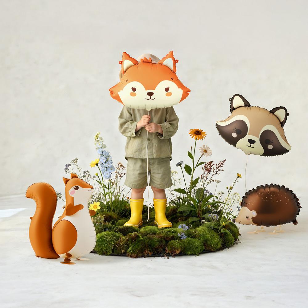 På ett kalas med skogsdjur som tema blir denna räv snabbt rummets busigaste ballong, en lekfull folieballong där djur står i centrum och gärna tar rollen som kvällens charmiga djurballong.