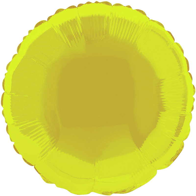 Folieballong Rund Gul omfattar en rund folieaballong i gult. Ballongen fylls med helium eller luft och har självförslutande ventil och är ca 45 cm stor.