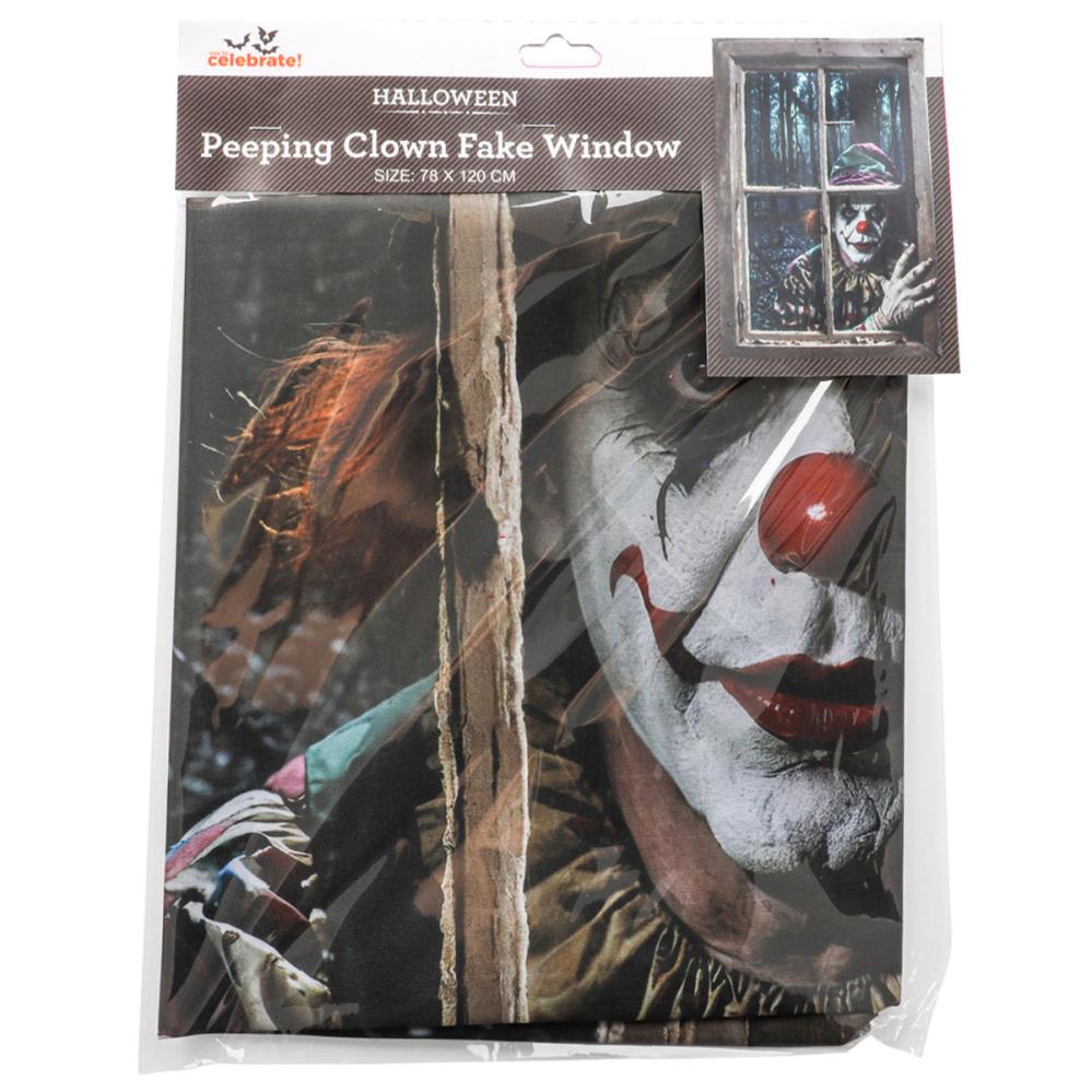 Skräm livet ur dina gäster med en Halloween-fönsterdekoration med clownmotiv som får det att kännas som att någon stirrar in. Denna Halloween-tygdekoration är perfekt som dekoration för att höja skräckfaktorn rejält på nästa halloweenfest.