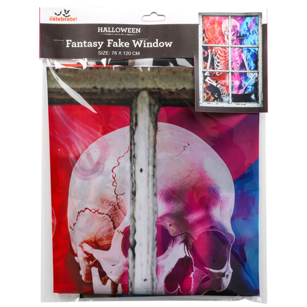 Ge fönstret liv med en Halloween-fönsterdekoration med skelettmotiv som garanterat väcker uppmärksamhet. Denna Halloween-tygdekoration ger illusionen av att ett skelett stirrar ut över kvarteret – perfekt som dekoration till en Halloweenfest.