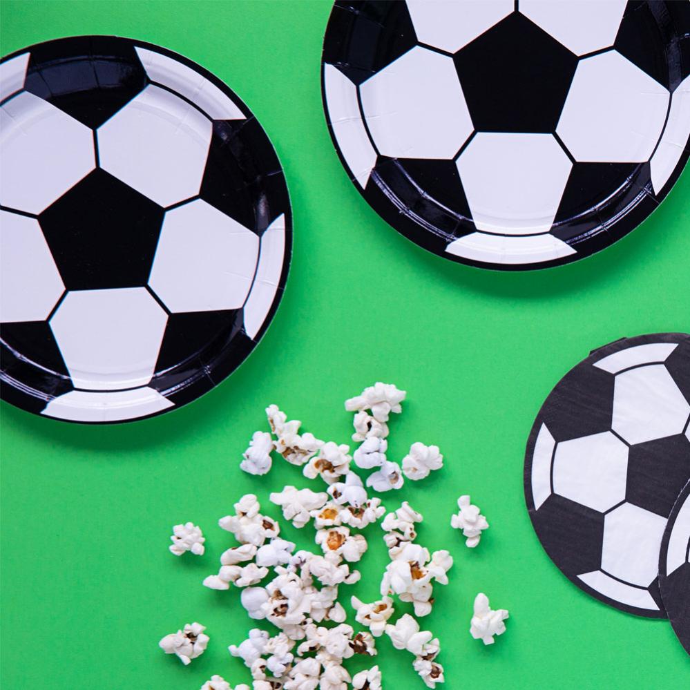 Med dessa svart-vita assietter blir det enkelt att få till ett häftigt fotbollstema till din kalas dukning. Duka fram dessa pappassietter tillsammans med andra fotbolls dekorationer och tillbehör för ett komplett fotbollskalas. Passande engångsassietter till både stora och små fotbolls-fantaster.