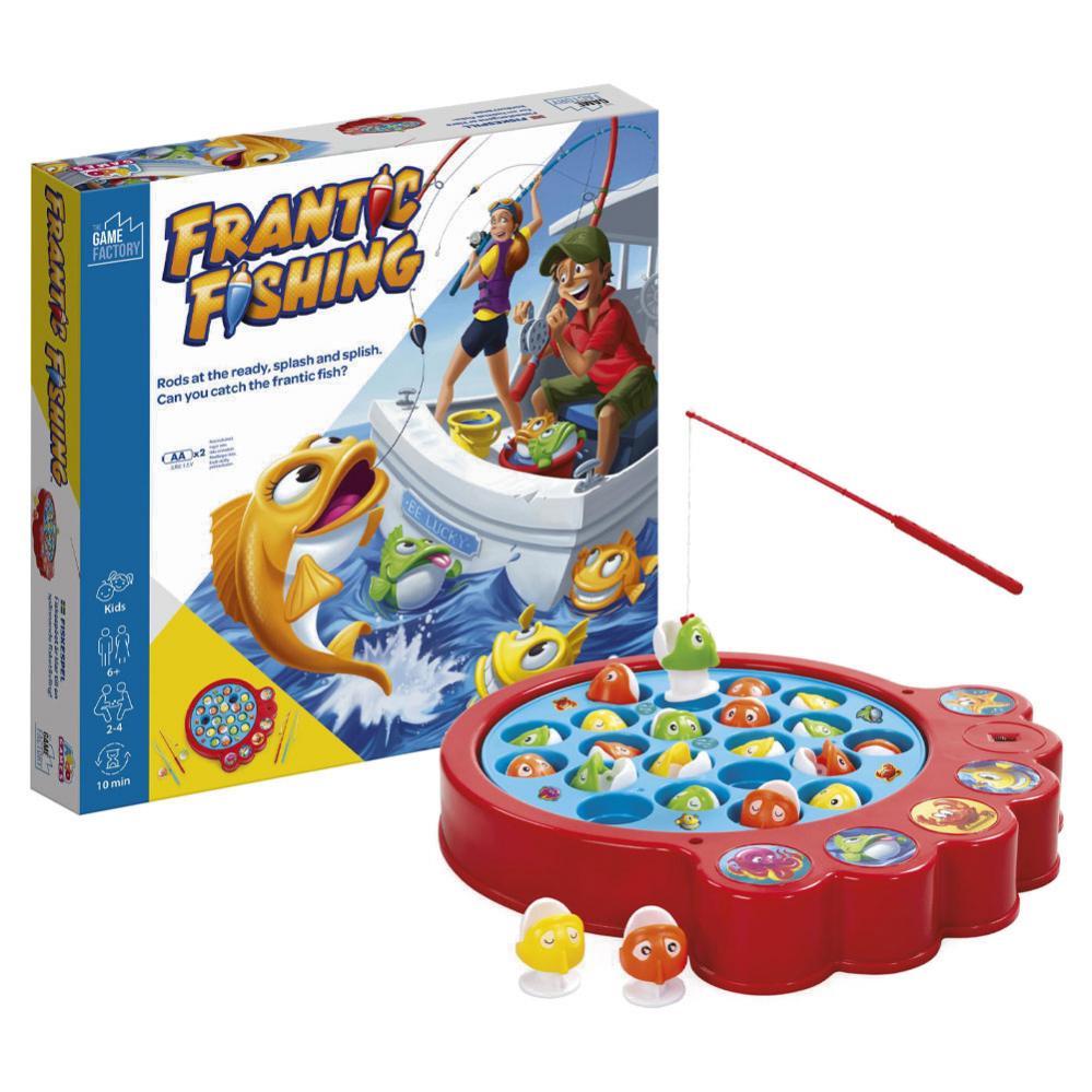 Frantic Fishing Fiskespel består av ett spel där du fiskar upp fiskarna med ett fiskespö. Fånga så många fiskar som möjligt, den som får flest vinner.
