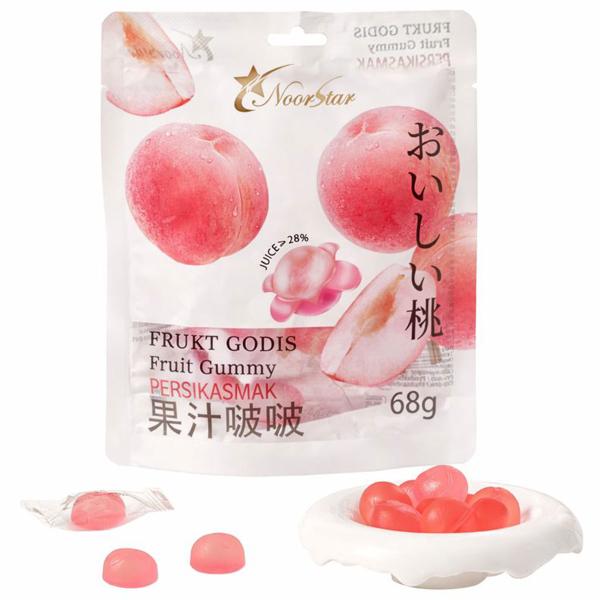Här samspelar godisets milda sötma med solmogen persika i en frisk smakprofil. Detta persikogodis har en mjuk tugga och en doft av nyplockad frukt. Som fruktgodis passar det för en filmkväll och som en liten vardagsnjutning.