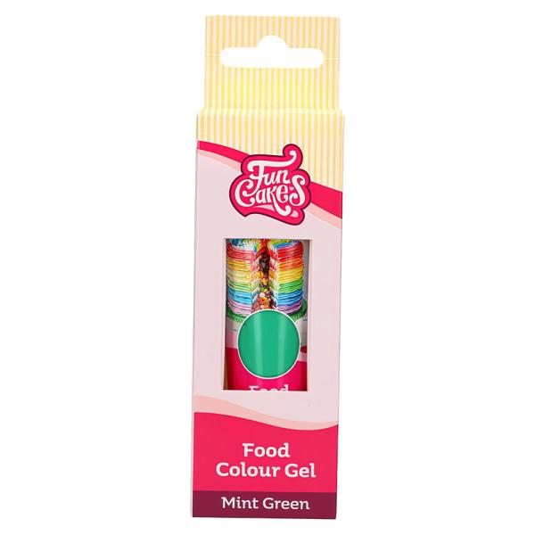 FunCakes Gelefärg Mintgrön omfattar 30 gram koncentrerad karamellfärg i mintgrönt. Färgen passar till användning i exempelvis sockerpasta, marsipan, glasyr, kräm, deg m.m.