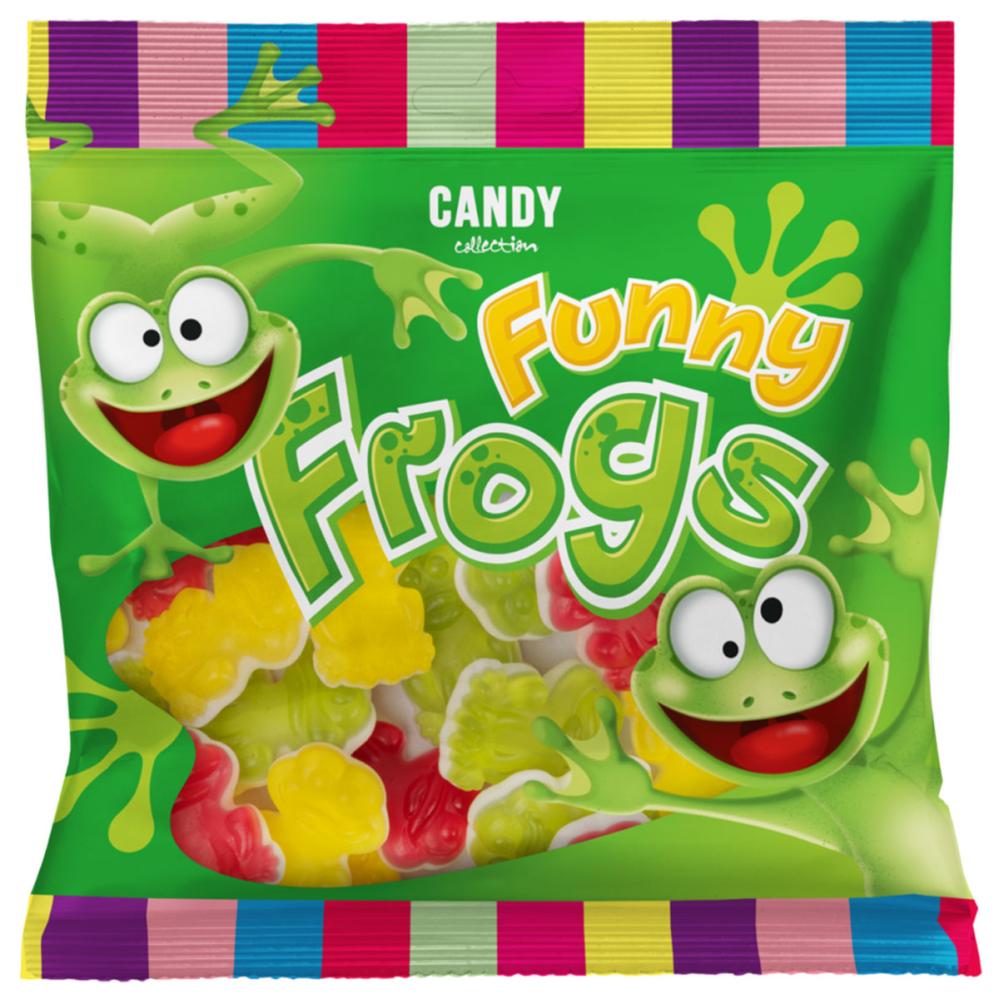 Funny Frogs är en godispåse fylld med gelé- och skumgodis i form av godisgrodor. Perfekt som Candy Collection-godis till kalas där fruktiga smaker står i centrum.