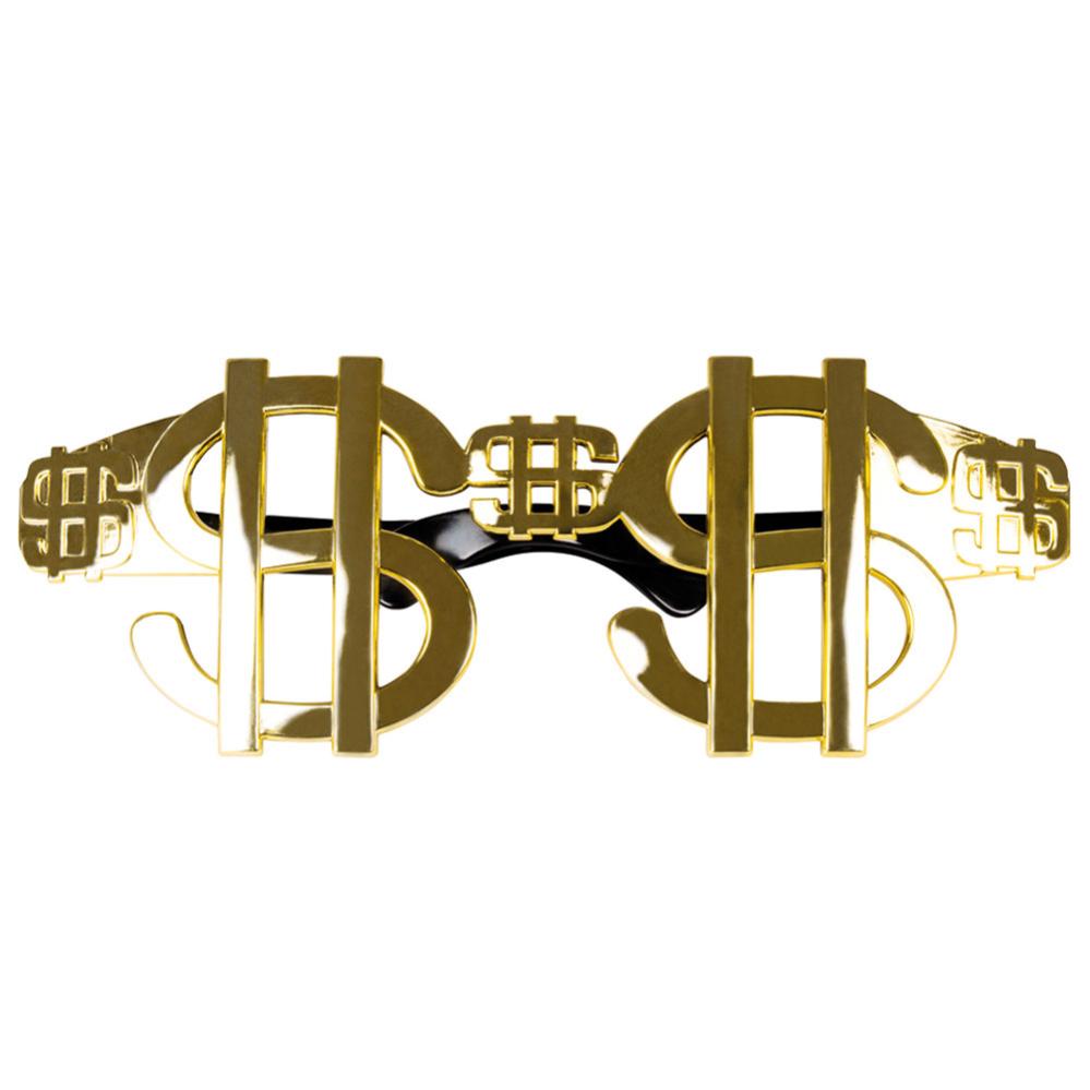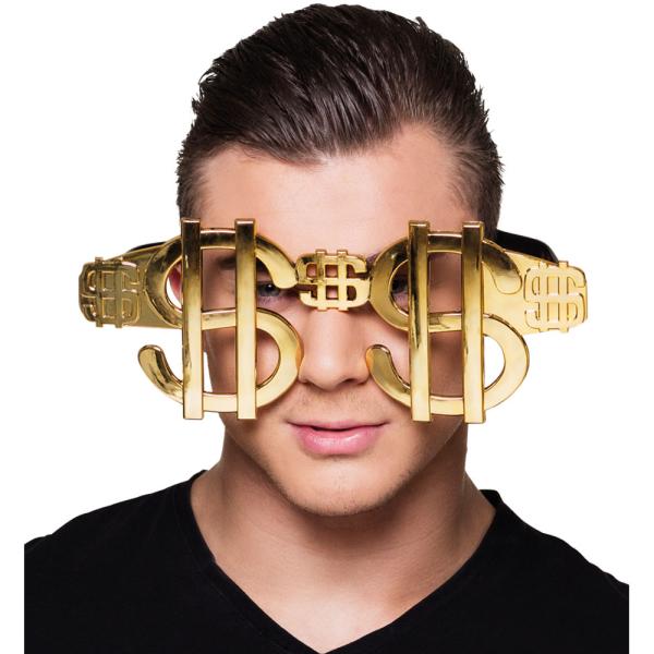 Super stora, roliga maskerad glasögon med guldiga dollartecken är helt rätt val av maskeradtillbehör för dig som ofta har pengarna i fokus. Tuffa maskerad glasögon som garanterat kommer att få dig att se stenrik ut!