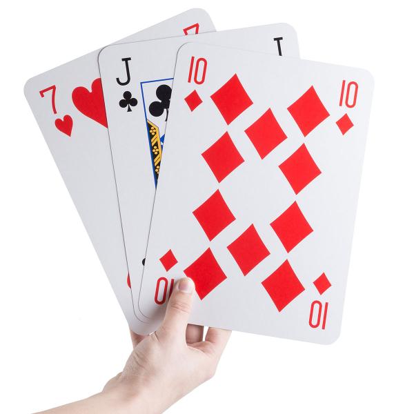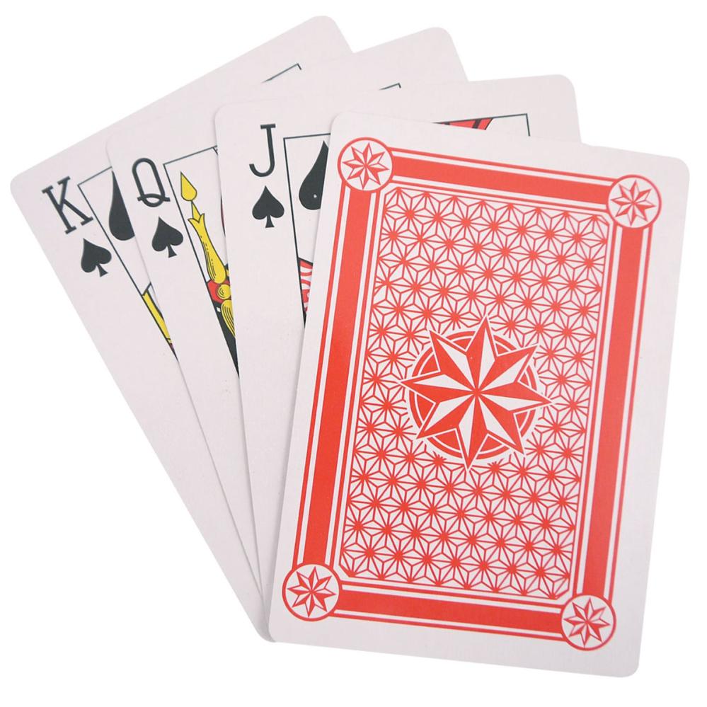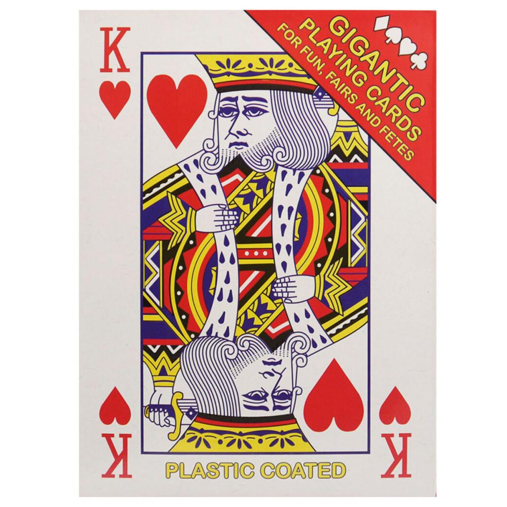 Gigantiska Spelkort 54-pack är ett paket med 54 st gigantiska spelkort av papper med plastyta.