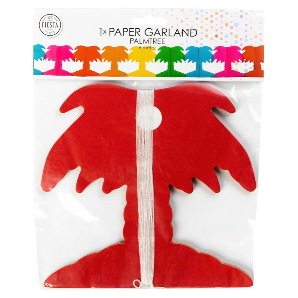 Girlang Palmträd Flerfärgade omfattar en pappersgirlang i form av palmträd i flera olika färger. Girlangen är i flera lager papper som vecklar ut sig när du drar ut den. Girlangen är ca 6 meter lång och palmerna ca 18 cm breda och 17 cm långa.
