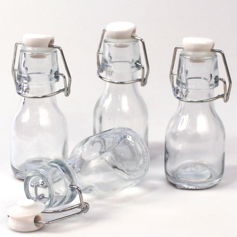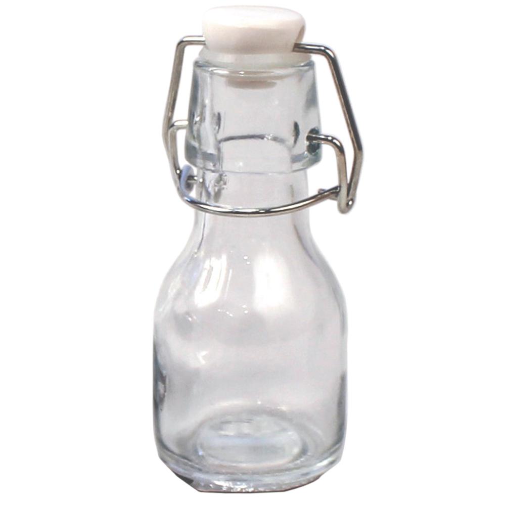 Glasflaska med Patentkork 4,5 x 11 cm består av en liten flaska för förvaring och servering med en återförslutningsbar bygelkork som sitter fast på flaskan.