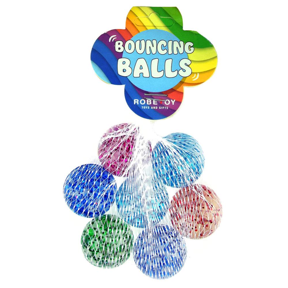 Glittriga studsbollar i fina färger, perfekt för dig som är ute efter ett flerpack skojiga studsbollar. Dessa små glitter studsbollar passar utmärkt som kalasleksak i kalaspåsen till fiskdamm och kalas, eller för ett barn som samlar på fina studsbollar.