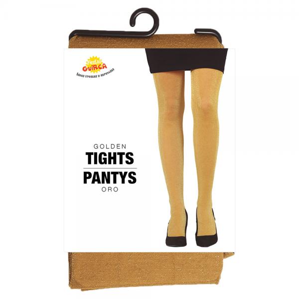 Häftigt glittriga strumpbyxor för alla som vill klä upp sig i snyggt guld! Håll dig både varm och snygg med dessa guldiga glitter-strumpbyxor. De här strumpbyxorna passar dessutom lika bra till fest som till maskerad, perfekt för alla som vill piffa upp klädseln med elegant glitter-guld!