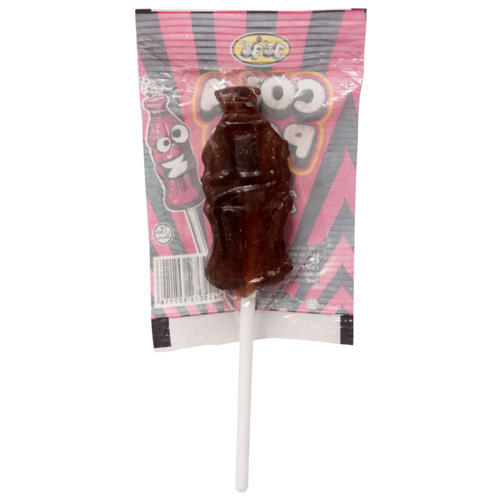 Godisklubba Colaflaska 10 g är en godisklubba på 10 gram i form av en colaflaska med colasmak.