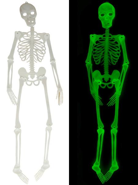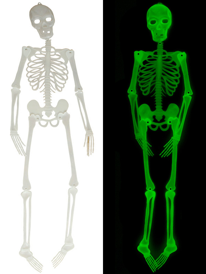 Observera att det självlysande skelettet behöver laddas under en stark ljuskälla innan användning.