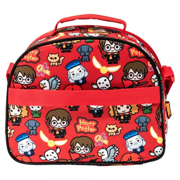 Harry Potter Gryffindors Lunchväska omfattar en röd lunchväska med Harry Potter 3D-motiv på framsidan och små motiv av olika Harry Potter karaktärer på baksidan. Väskan har ett rymligt fack med dragkedjor, ett smidigt handtag och en lång, justerbar axelrem på 120 cm. Lunchväskan är tillverkad av polyester och är ca 20 cm hög, 25,5 cm bred samt 10 cm djup.