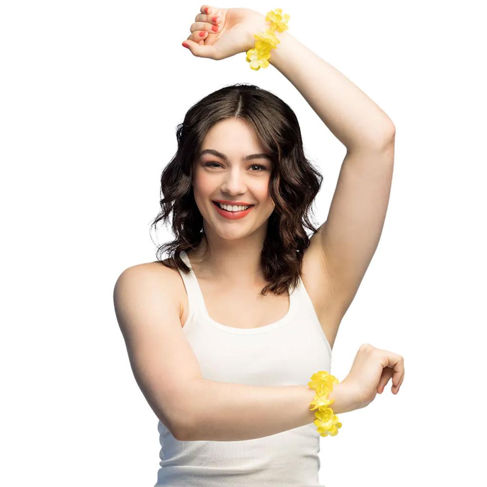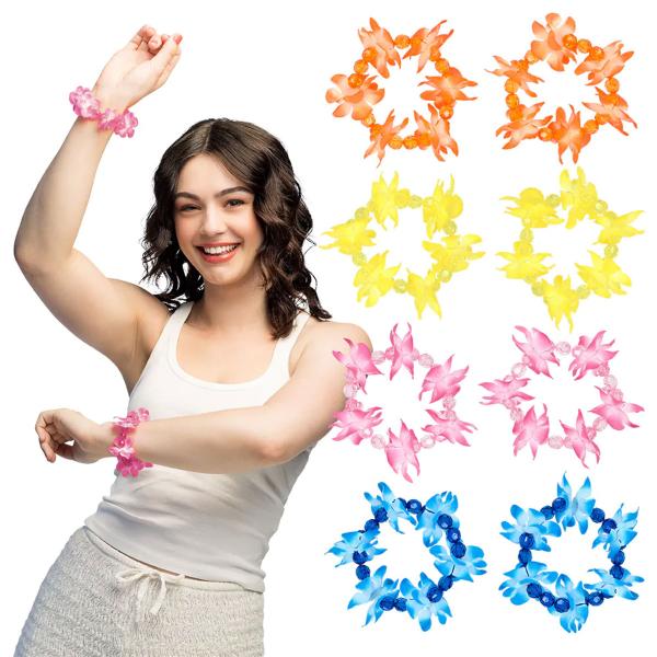 Ett blomarmband passar till stranden, festen och temakvällar och har elastisk tråd som sitter skönt och gör det lätt att bära hela dagen. Detta armband ger en känsla av Hawaii och blir ett färgstarkt inslag under sommaren.