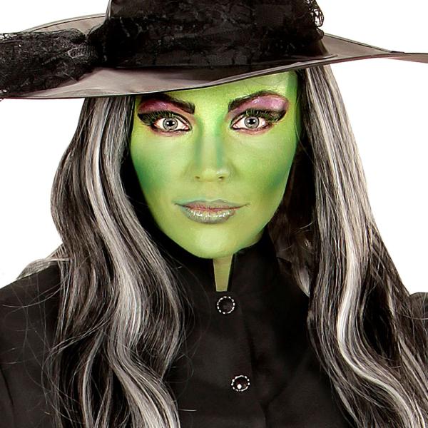 Häxa Sminkset omfattar ett sminkset med ansiktssmink, sminkpennor och applikator för att t.ex. måla ett häxansikte.