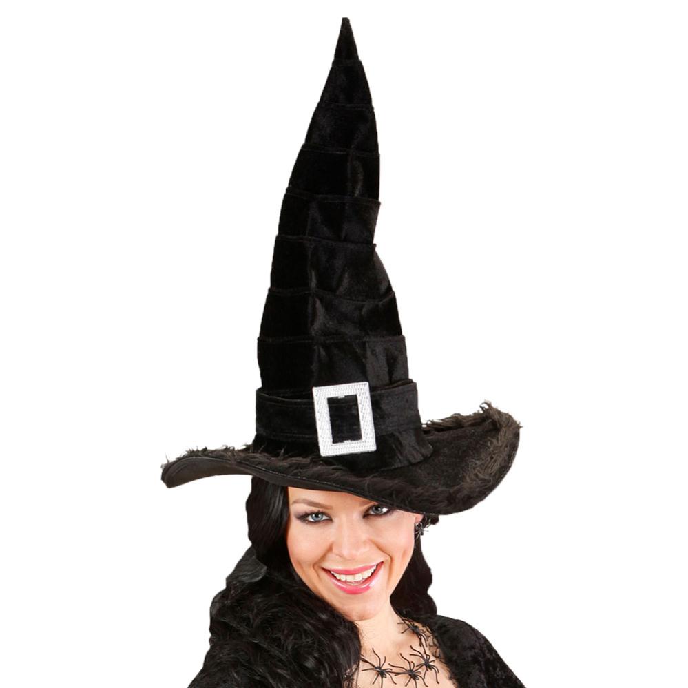 Sammet är det allra senaste i häxornas modevärld, så se till att följa trenden med denna läckra häxhatt! Supersnygg häxa hatt i svart som blir det perfekta tillbehöret till din halloween eller maskerad utklädnad. Med den här hatten på huvudet förtrollar du dig enkelt till en riktigt modemedveten häxa!