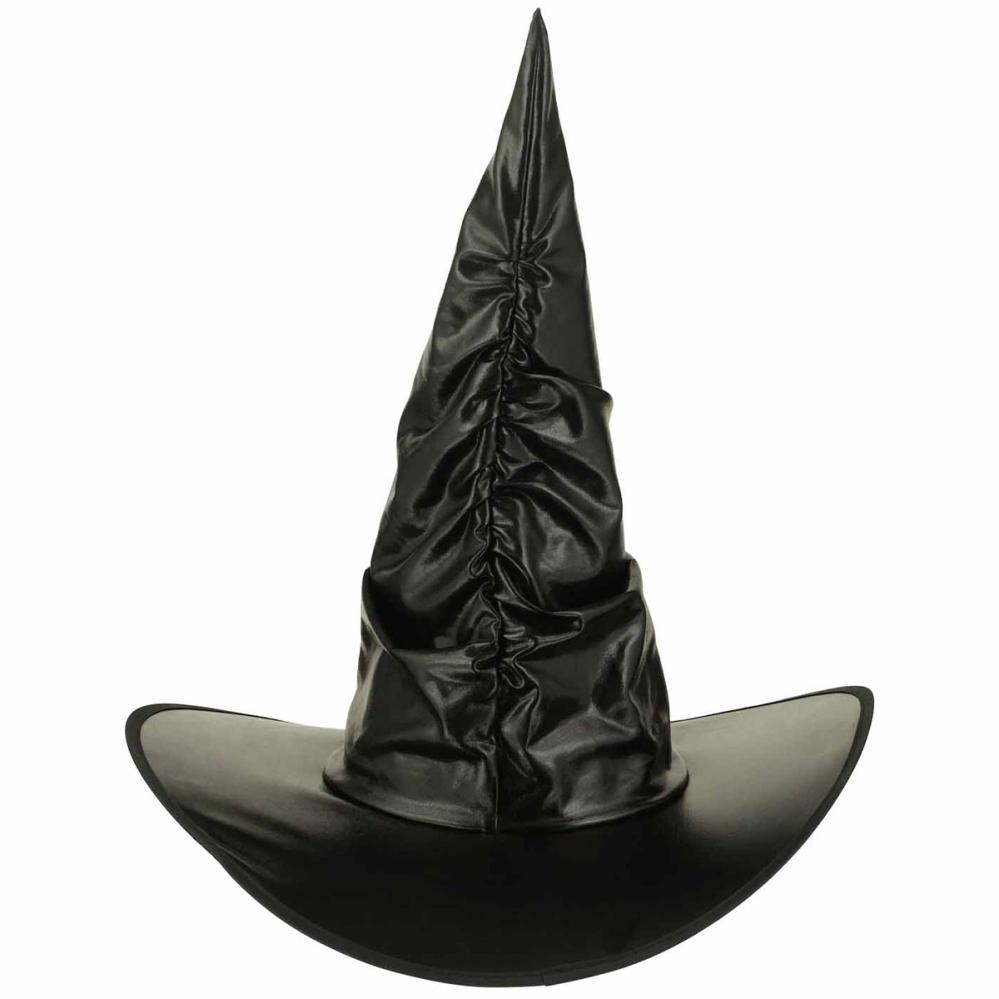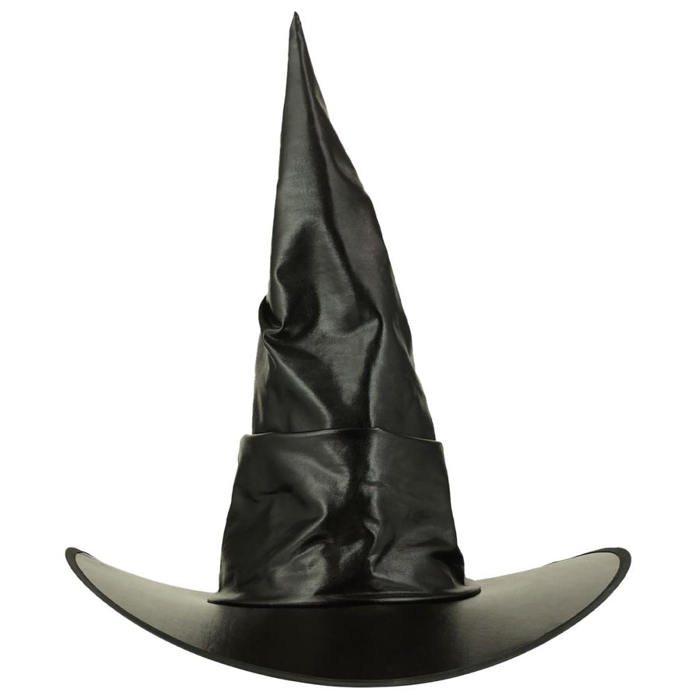 Sätt pricken över i:et på din Halloweenhäxa-outfit med en svart häxhatt i storlek vuxen. Den glansiga finishen och den skrynkliga spetsen gör den till en perfekt häxhatt till Halloweenmaskeraden.