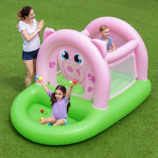 Superskojig uppblåsbar hoppborg med bollhav i form av en rosa gris som garanterat blir en succé hos alla små barn som vill busa, stoja och skoja. Med härlig hoppborg och skojigt bollhav får ditt barn det bästa av två världar, som dessutom kan användas både inomhus och utomhus.