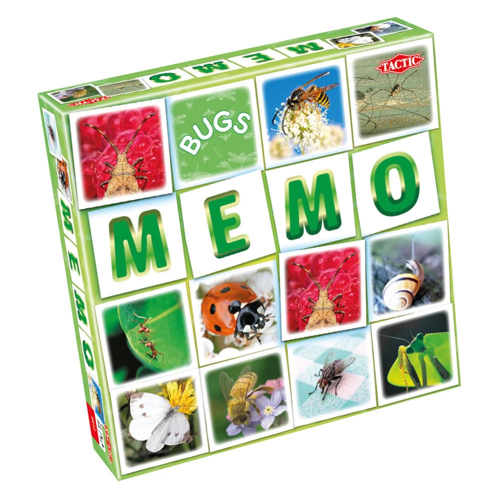 Insekter Memo Spel innehåller 54 stycken memobrickor med motiv av olika insekter, så som sniglar, nyckelpigor, skalbaggar och mycket mer. Spelet går ut på att hitta matchande par genom att vända på memobrickor och försöka memorera vart de ligger. Spelregler medföljer.