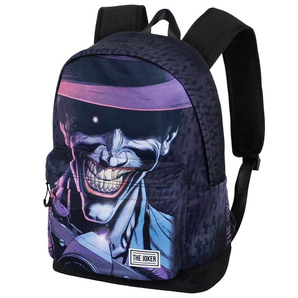 Joker Ryggsäck Eco omfattar en barnryggsäck med Joker motiv. Ryggsäcken har ett bärhandtag, justerbara vadderade axelband, ett laptopfack och två fack med dragkedjor, inklusive ett huvudfack och ett framfack.