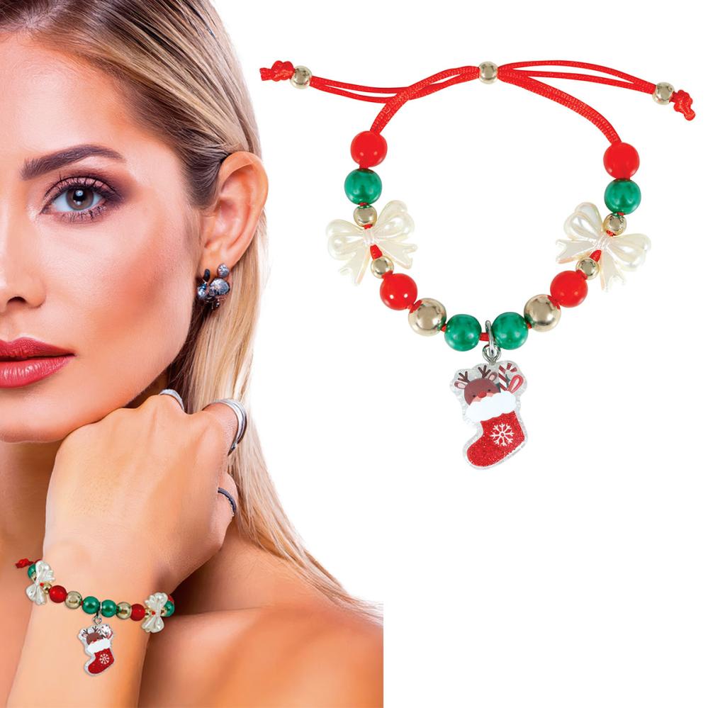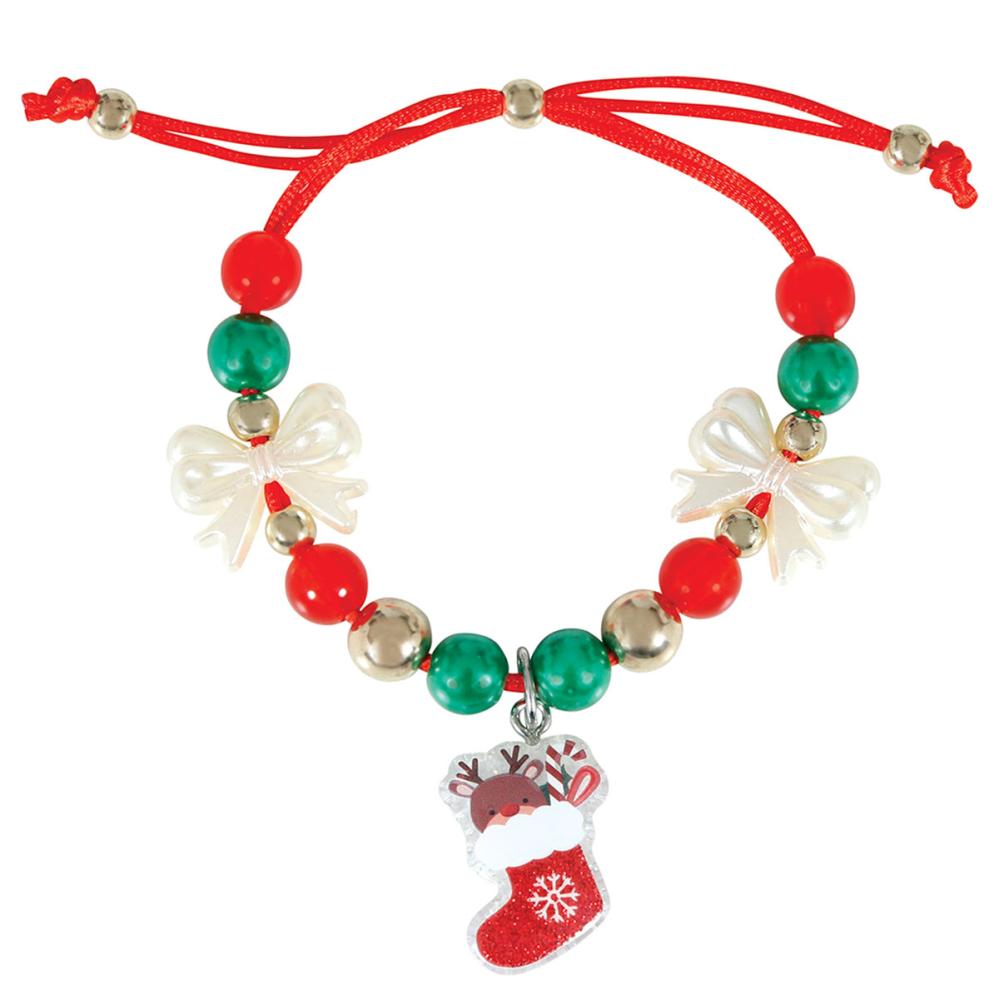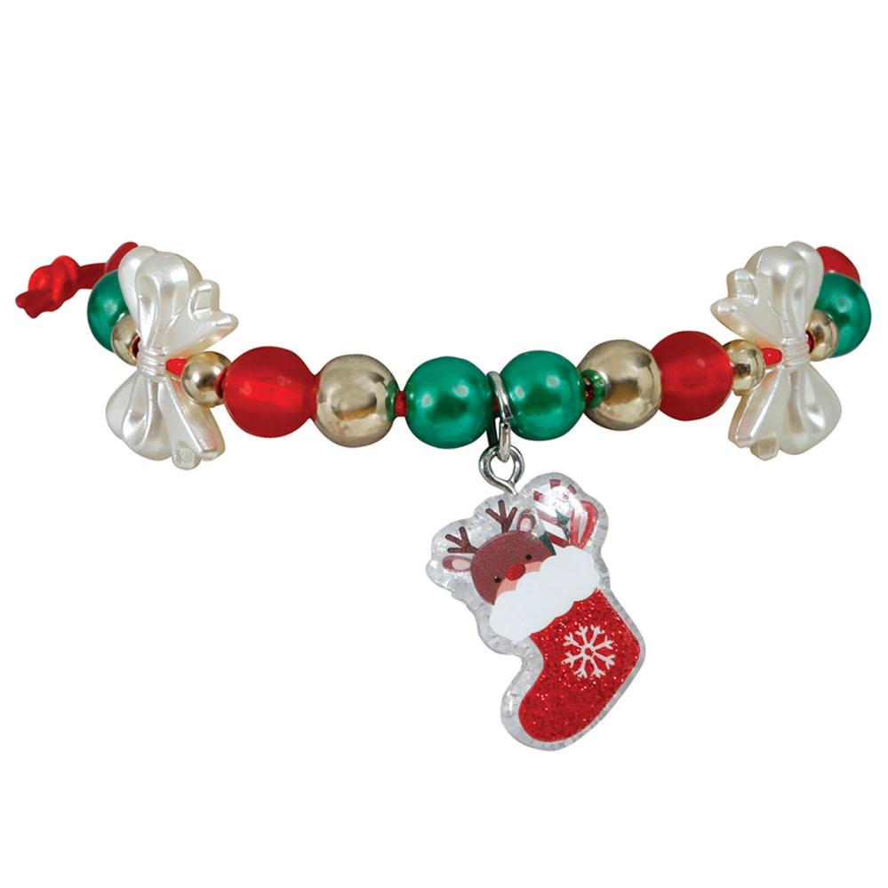 Sätt stilen med denna lekfulla julaccessoar som mixar färgglada pärlor, vita rosetter och en glittrig julstrumpa med Rudolf. Det är ett armband som passar perfekt både till vardag och fest under jul.