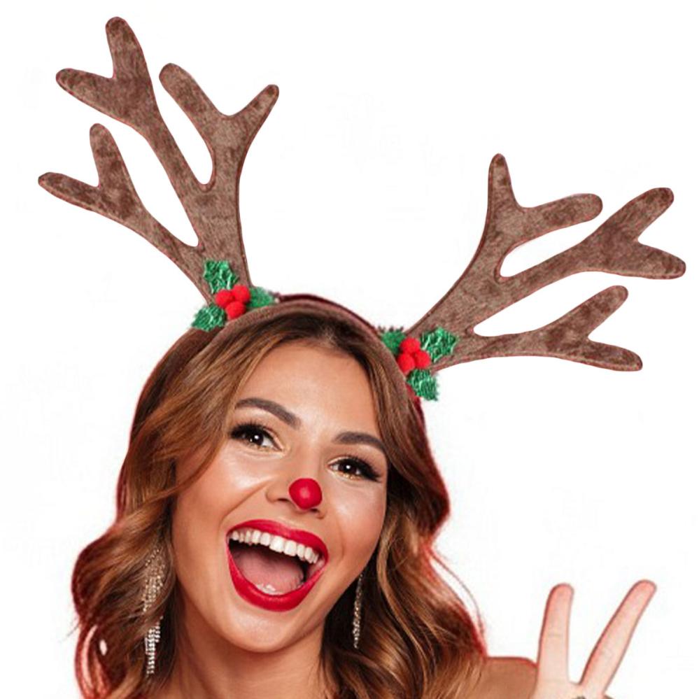 Vid en julmaskerad fungerar ett juldiadem som en enkel detalj som kompletterar kläderna och sitter stabilt på huvudet. Ett diadem i brun ton, som är lätt att bära, passar även vid andra maskerader, där renhornen ger en tydlig men diskret accent.