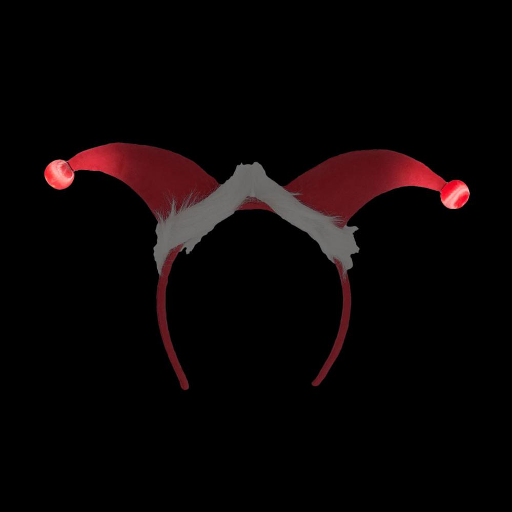Juldiadem med Uppstickande Tomteluvor omfattar ett rött diadem med två uppstickande tomteluvor i rött med vit pälskant.
