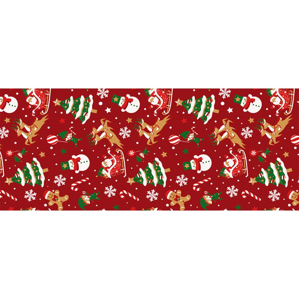 Jullöpare med Julmotiv är en röd bordslöpare med klassiska julmotiv av tomten och hans renar, julgranar, tomtenissar, polkagrisar, stjärnor och snöflingor.