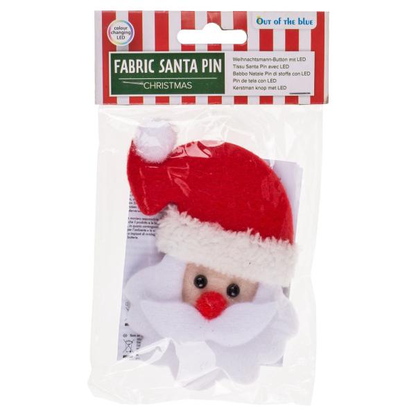Fin och rolig jul-pin med jultomte och LED ljus i olika färger, perfekt för alla som vill gå omkring med en lysande jul-dekoration på jackan, väskan eller tröjan. En santa badge och pin passar utmärkt till din jul-klädsel och blir ett skojigt jul-pynt i juletider.