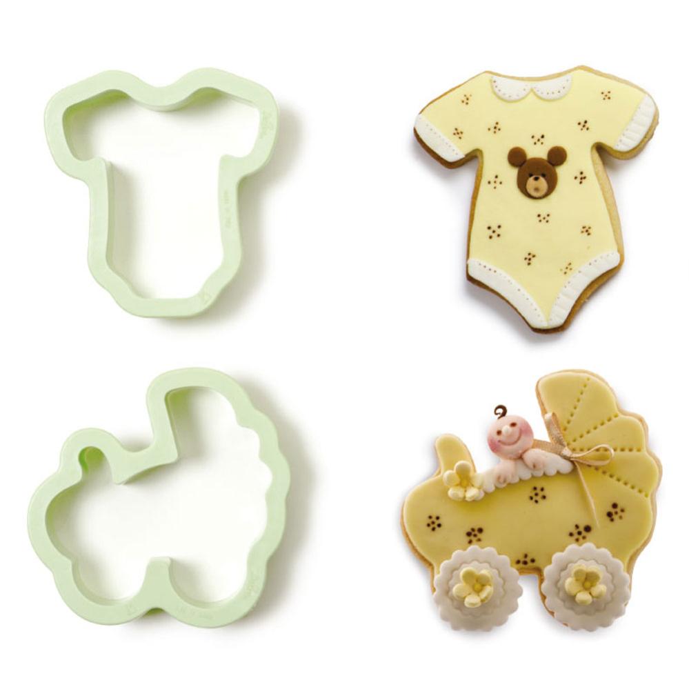 Har du fått i uppgift att baka inför bebisfesten? Då kan dessa sockersöta bakformarna hjälpa dig i din bakning. Med dessa utstickare kan du enkelt och snabbt skapa fantastiska bakelser i form av bebis bodys och barnvagnar som ett riktigt proffs. Perfekta kakformar till exempelvis baby shower kakor, dop bakelser och andra bebis firanden.