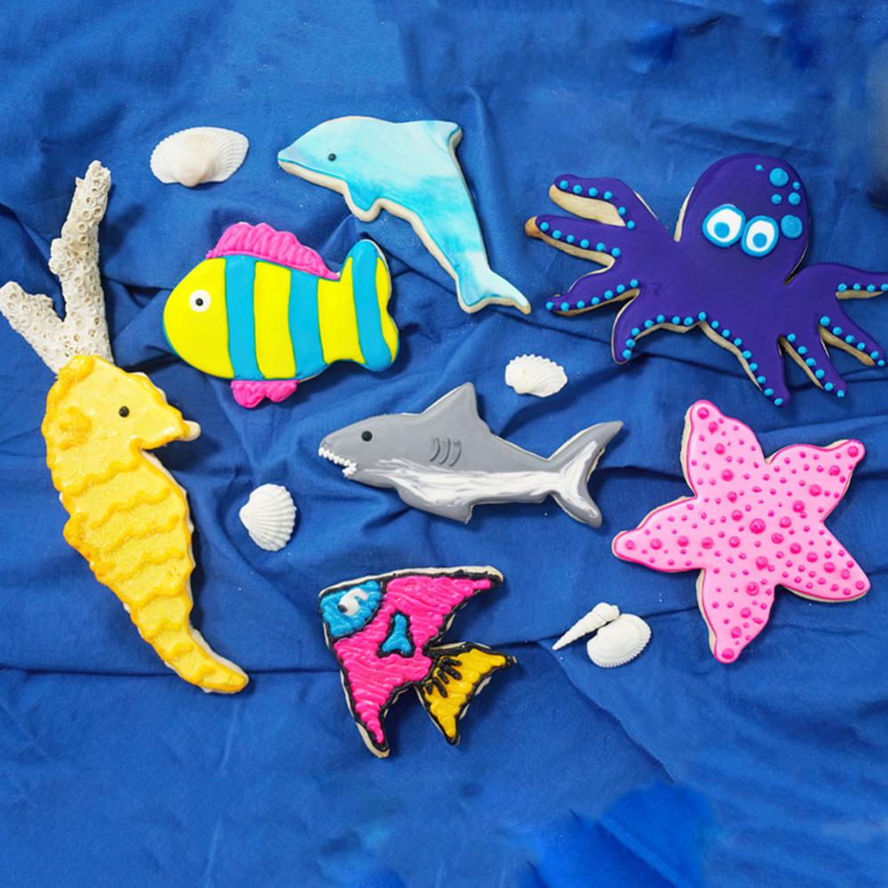 Ska du baka inför ett kalas i havstema så är dessa fina kakformar ett måste till bakningen! Med dessa fina utstickare kan du enkelt få till kakor, figurer och dekorationer i form av häftiga havsdjur. Skapa figurer i form av delfiner, hajar, bläckfiskar och andra havsvarelser på nolltid. Fina och praktiska bakformar som passar alldeles utmärkt till kakdeg, sockerpasta, marsipan och liknande.