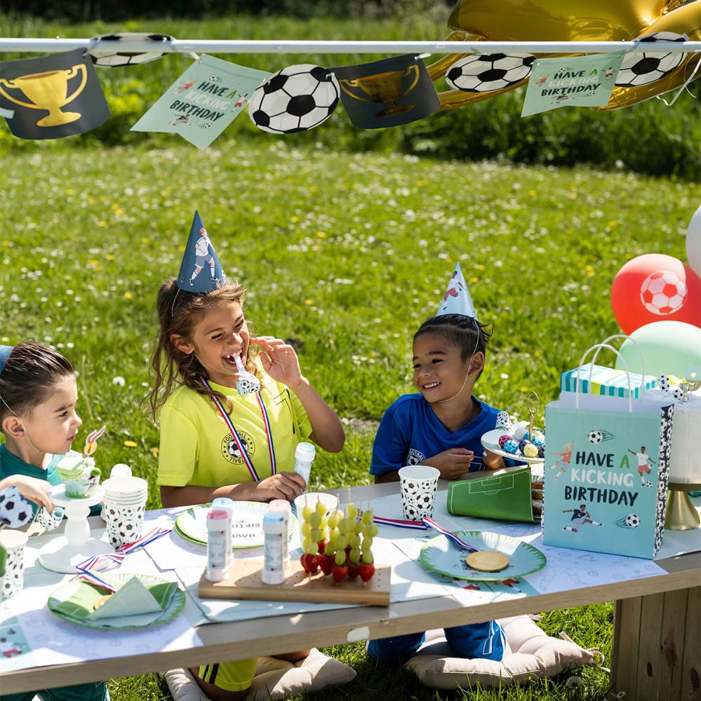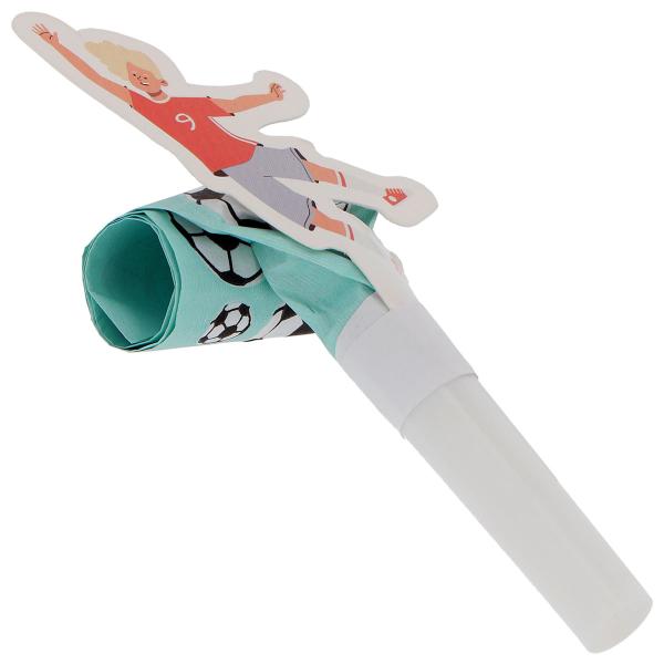 Sätt fart på kalaset med dessa partytutor med fotbollstema. Varje tuta på barnkalaset tjuter högt och rullar ut sig som klassiska ormblåsor. Perfekta fotbollskalastillbehör för ett lyckat firande.