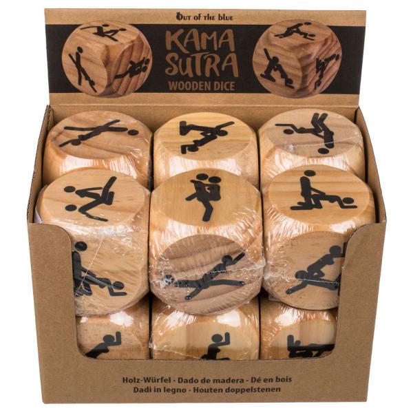 Kama Sutra Tärning omfattar en tärning med streckgubbar som gestaltar olika sexställningar. Tärningen är gjord i trä och mäter 6 cm i höjd och 6 cm i bredd.