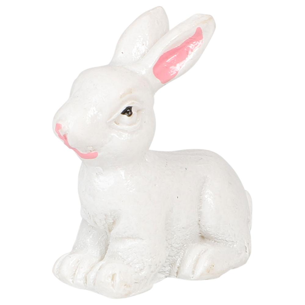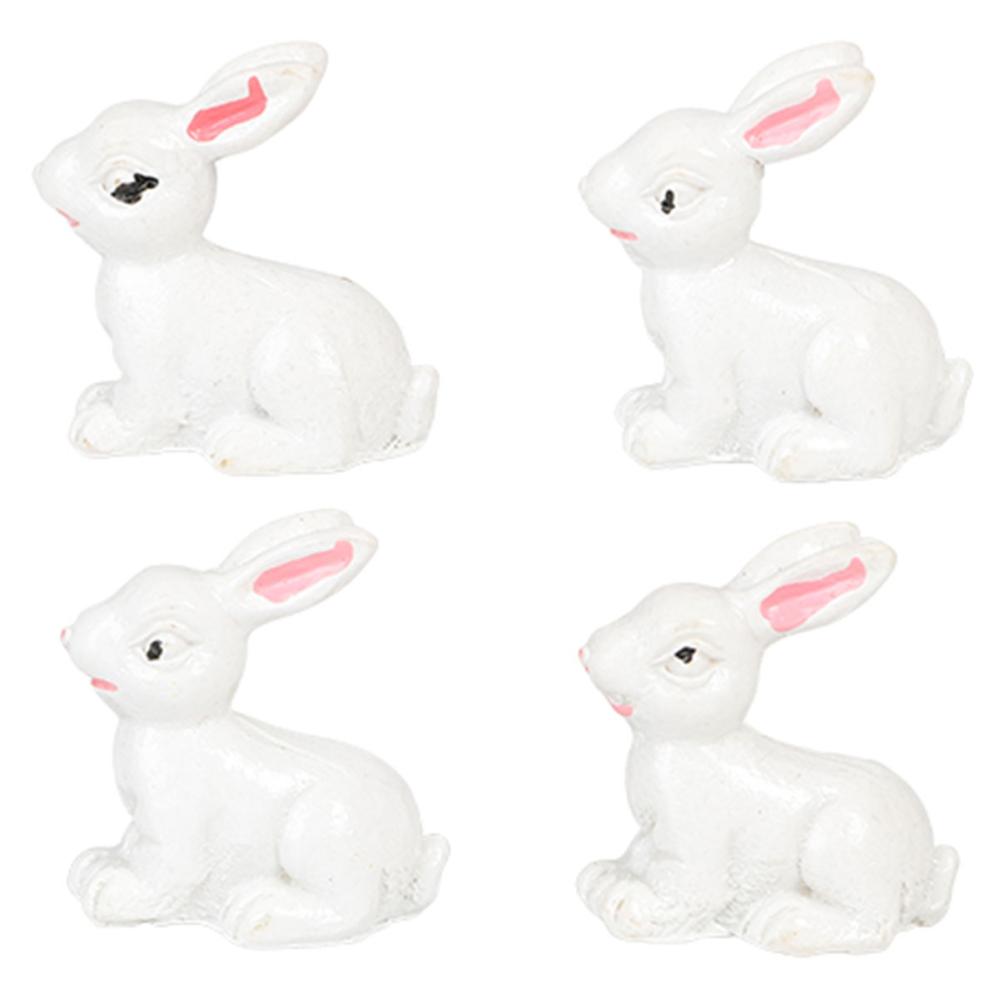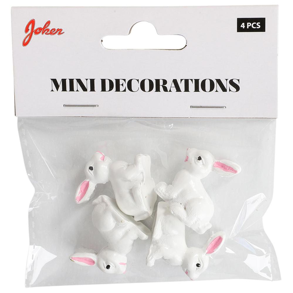 Kanin Vit 3 cm 4-pack innehåller små dekorationer i form av vita kaniner dekorerade med blommor och rosetter.