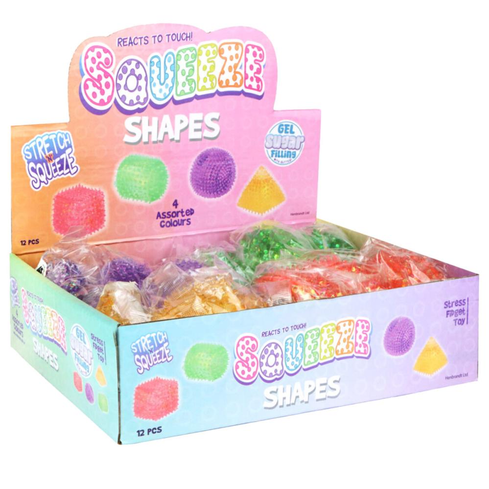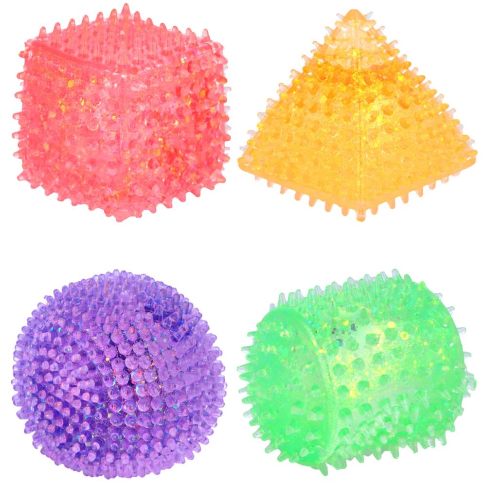 Klämboll med Nitar & Konfetti är en klämboll med nitar, fylld med gelé och skimrande konfetti. Den finns i färgerna blålila, grön, rosa och gul.