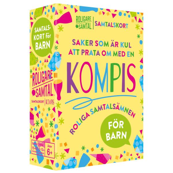 Kompis Roligare Samtalsämnen Frågespel omfattar ett kortspel för barn med 55 stycken kort med 110 olika frågor som startar roliga och intressanta diskussioner. Ta ett kort, läs frågan och låt en eller alla dina kompisar ge sitt svar på frågan.