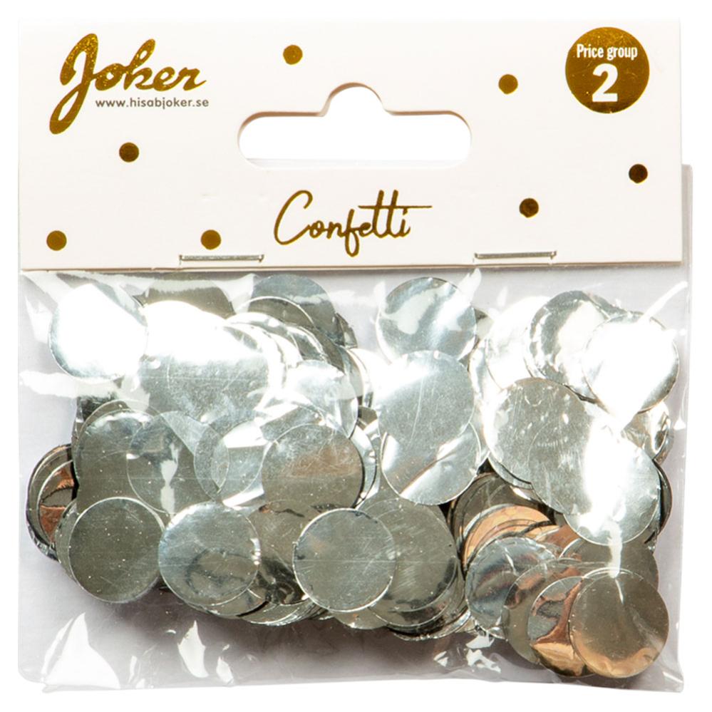 Konfetti Dots Silver omfattar 15 gram silverkonfetti i form av cirklar.