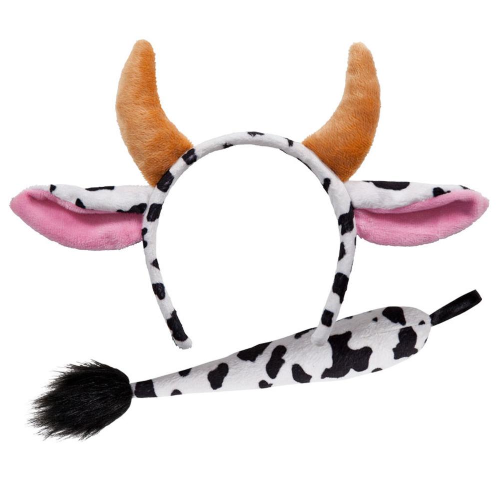 Koöron och Svans Tillbehörskit består av ett vitt och svart diadem med koöron och horn. Ingår även en matchande kosvans. Med perfekta tillbehören till ko utklädnaden.
