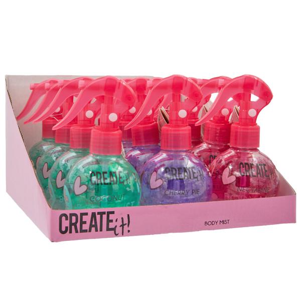 Kroppsspray med Doft 150 ml omfattar en flaska med 150 ml kroppsspray i grön, rosa eller lila. Finns i dofterna kokos, körsbär och nektarin.