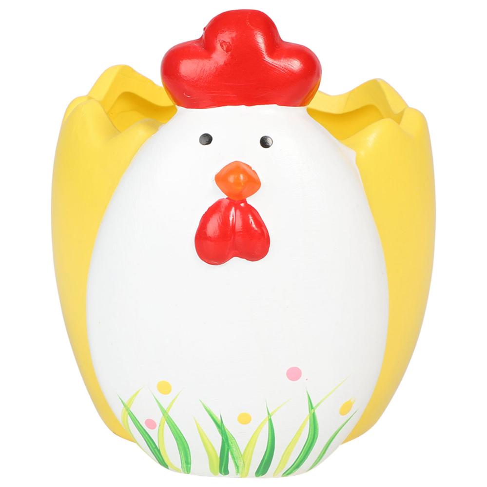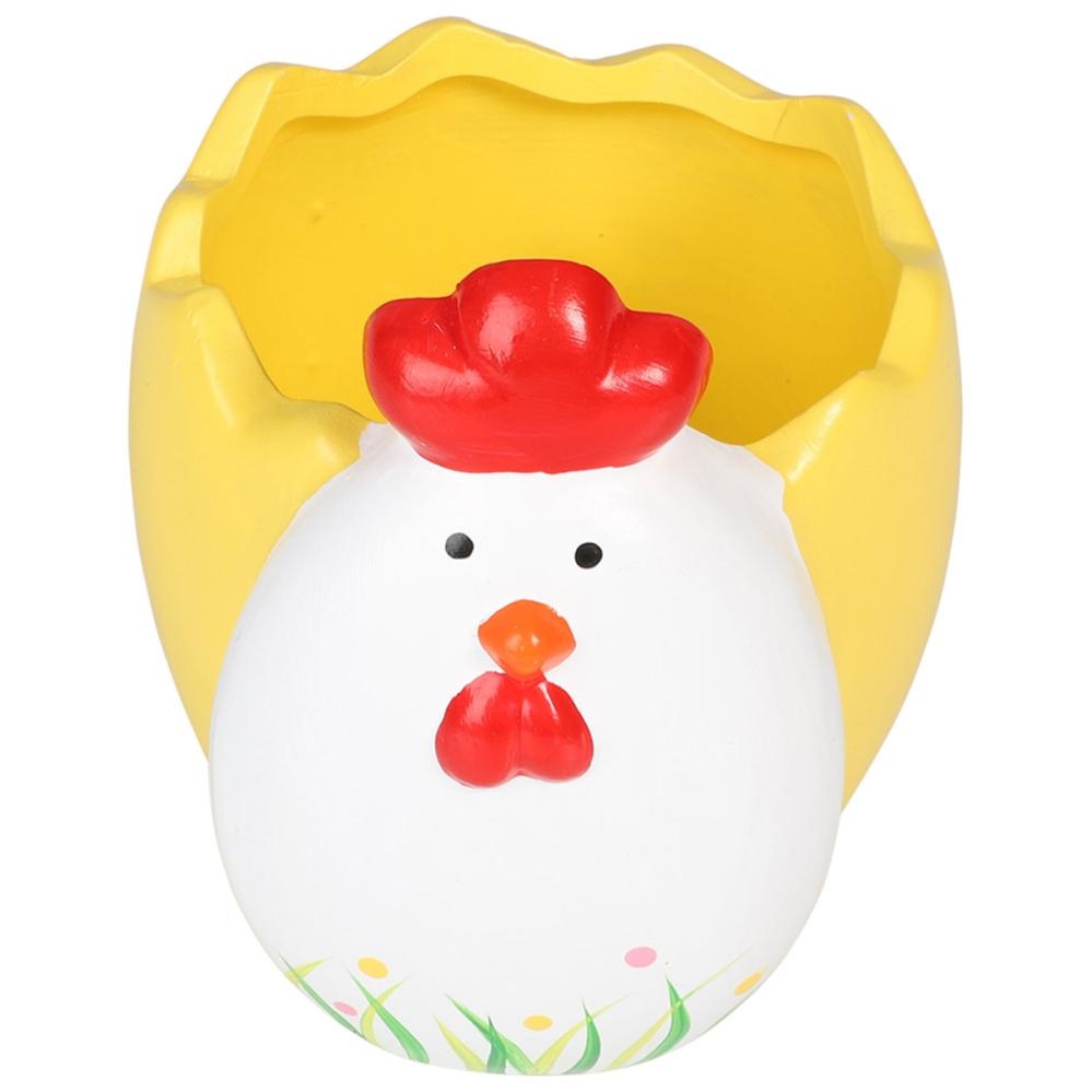 Kruka Påskkyckling 9x7 cm är en gul kruka som föreställer ett ägg och dessutom är dekorerad med en vit påskkyckling.