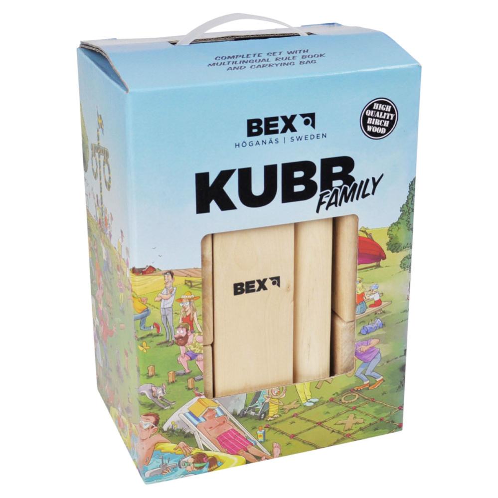Kubb Family omfattar ett klassiskt kubbspel med kung, kubbar, kastpinnar och hörnpinnar. I kubb gäller det att slå ner motståndarens kubbar med kastpinnarna och till sist kungen. Kubbspelet är tillverkat i hållbart och tåligt björkträ i hög kvalité. Förvaringspåse och spelregler medföljer.