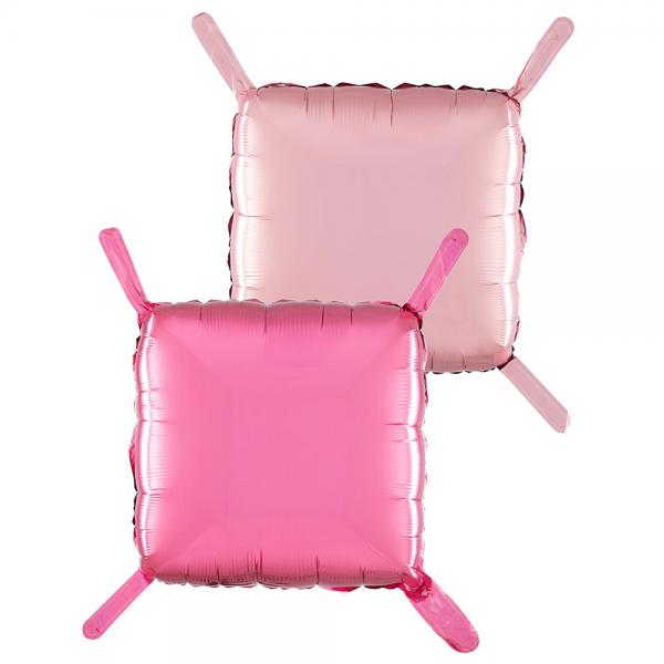 Kuddballonger Rosa/Pastellrosa 4-pack består av fyra tvåfärgade folieballonger i form av kuddar i färgerna rosa och pastellrosa. Ballongerna kan knytas ihop med varandra med hjälp av knytpunkterna i hörnen.