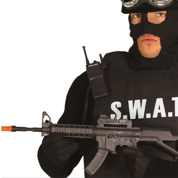 Kulsprutepistol med Ljud 56 cm omfattar en leksak i form av en svart kulsprutepistol med ljud.