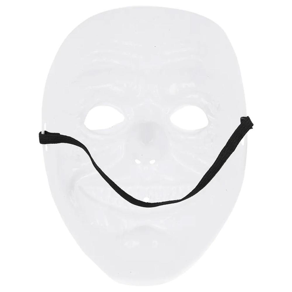Leende Clownmask är en vit clownmask med ett leende, röda läppar, röd näsa och blå färg runt ögonen. Masken har hål för ögon, näsa och mun och hålls på plats med ett svart elastiskt band.